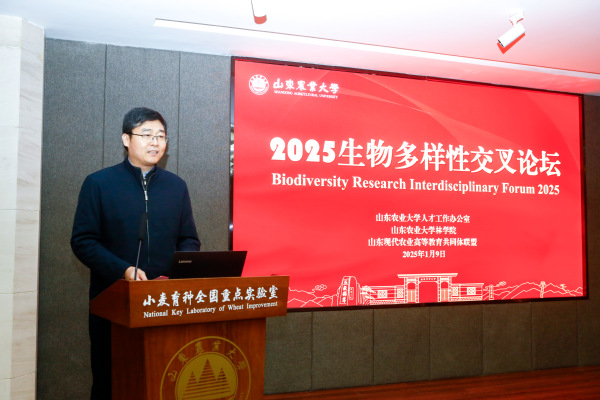 2024年1月9日,首届“生物多样性交叉论坛”在我校召开。本次论坛由学校人才工作办公室、林学院、山东现代农业高等教育共同体联盟联合主办。开幕式上,山东农业大学党委常委、副校长王勇致辞,对与会专家学者表示欢迎,并介绍了学校办学历史和“冲一流”建设情况。他表示,生物多样性领域的研究工作必将为“大食物观”背景下的大农业和可持续发展提供科学支撑。本次论坛的举办,标志着我校在该领域学科交叉融合的探索中开启了新篇章,也标志着“生物多样性交叉研究中心”筹建工作正式启动。希望中心与国内外同仁一道,为推动生物多样性研究和“基于自然的解决方案”作出应有的贡献。